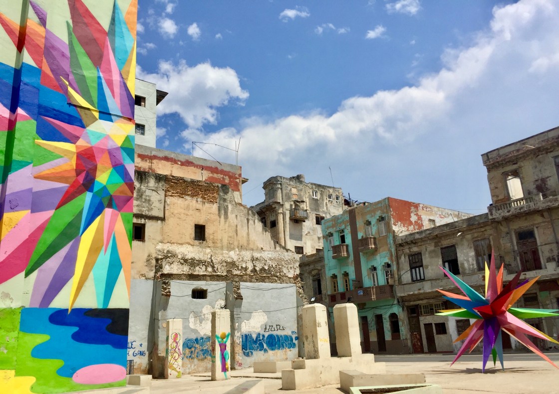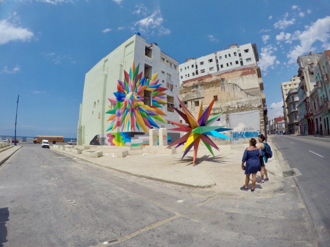 The absolute contrasting beauty of the old and decaying buildings as the backdrop for these new and contemporary works with modern materials and giant pops of color was breathtaking and exciting to behold. There could not have been a more perfect setting, in my opinion, than the aging streets and dilapidated interiors of the once magnificent, still remarkable Havana.